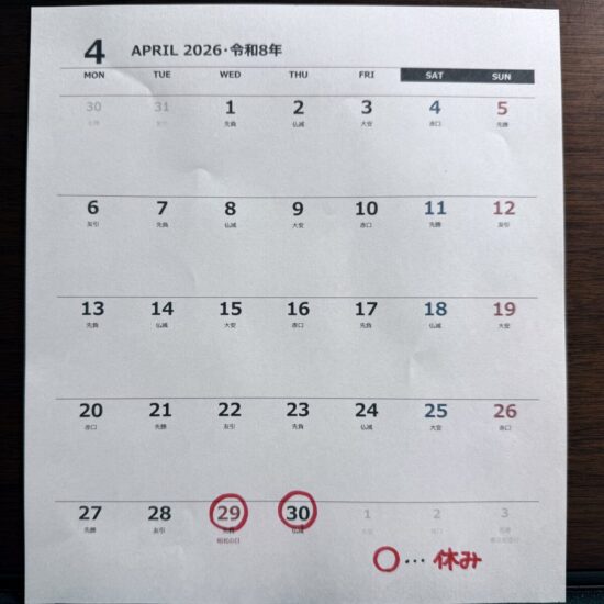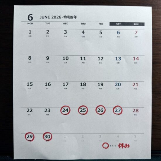 6月の休みは変更するかもしれません。変更する場合は4/20に、このカレンダーを書き換えますm(__)m